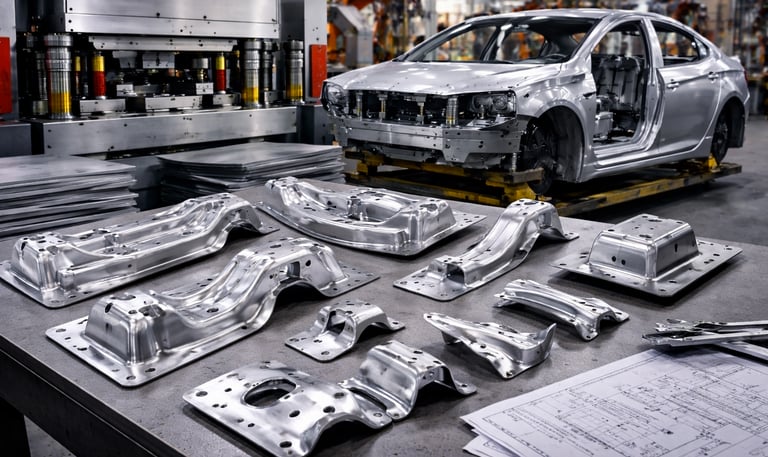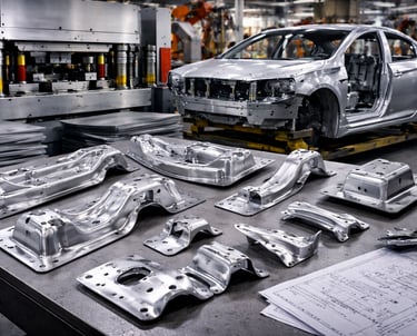 We provide advanced tooling and optimization for automotive manufacturing, enhancing efficiency and reducing waste through our specialized services in stamping and die troubleshooting. BIW panels, brackets, reinforcements, EV battery trays/enclosures, Kick-ups, crossmembers.